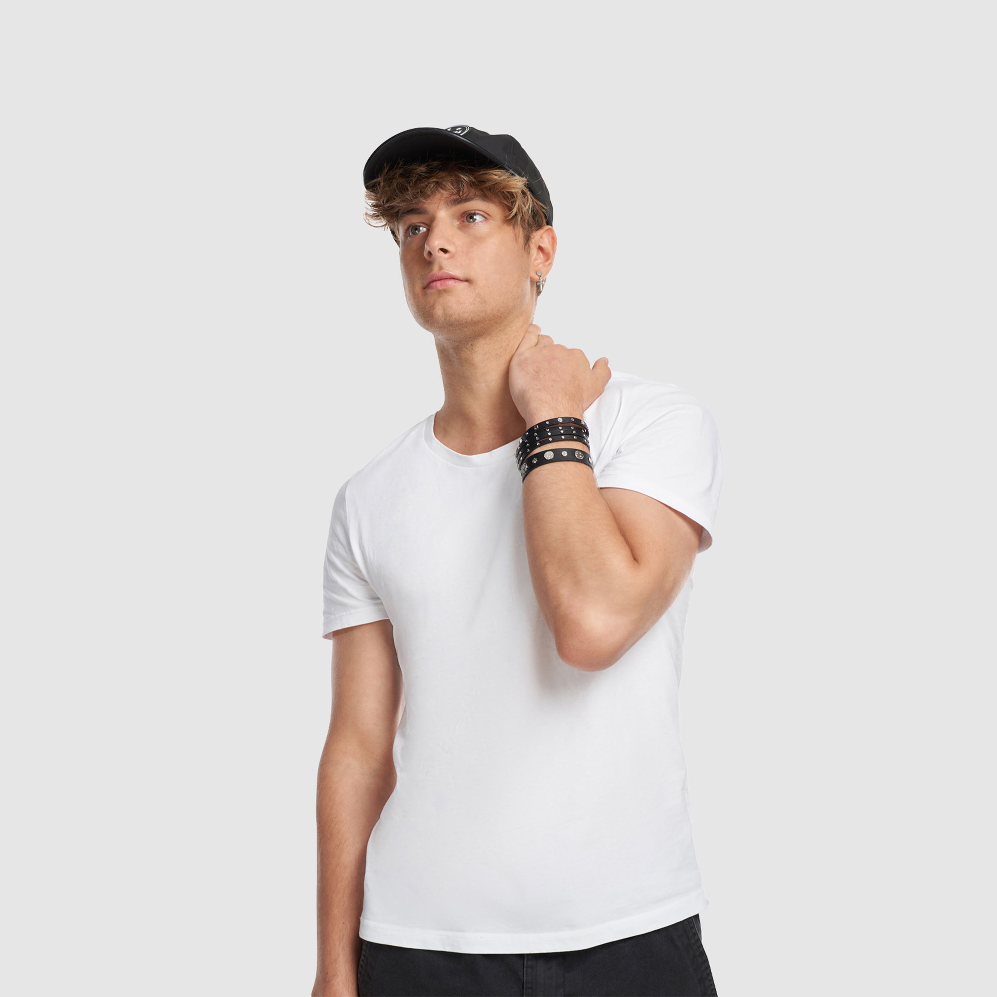 素食皮革铆钉手链,磁性扣件。月亮和星星雕刻纯银铆钉和扣件。